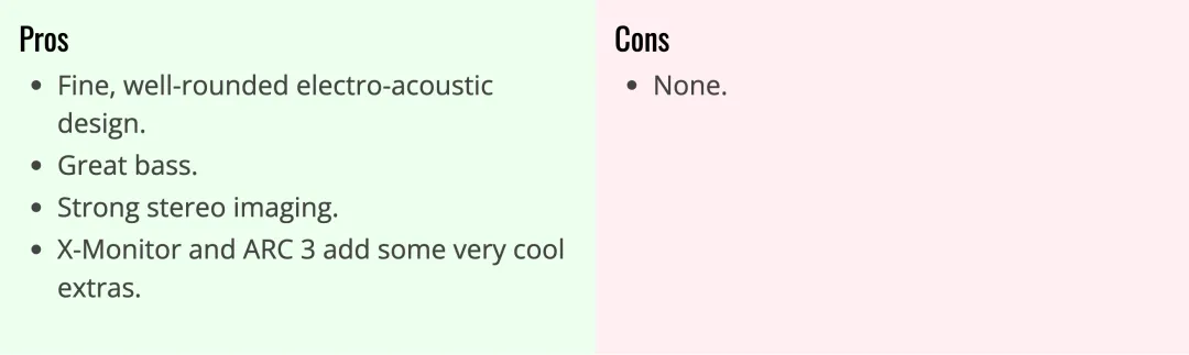 在我的房间里,ARC X 帮助清理了低频并平滑了一些固有的中音特性,但即便如此,没有它,Precision MTM 也完全可用。